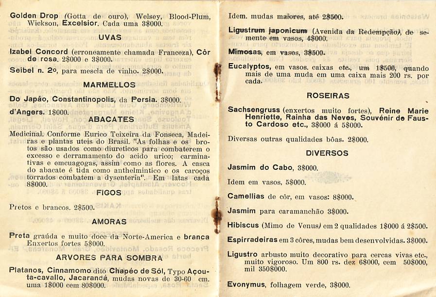 Catálogo da Floricultura Walter Winge - Ano 1947